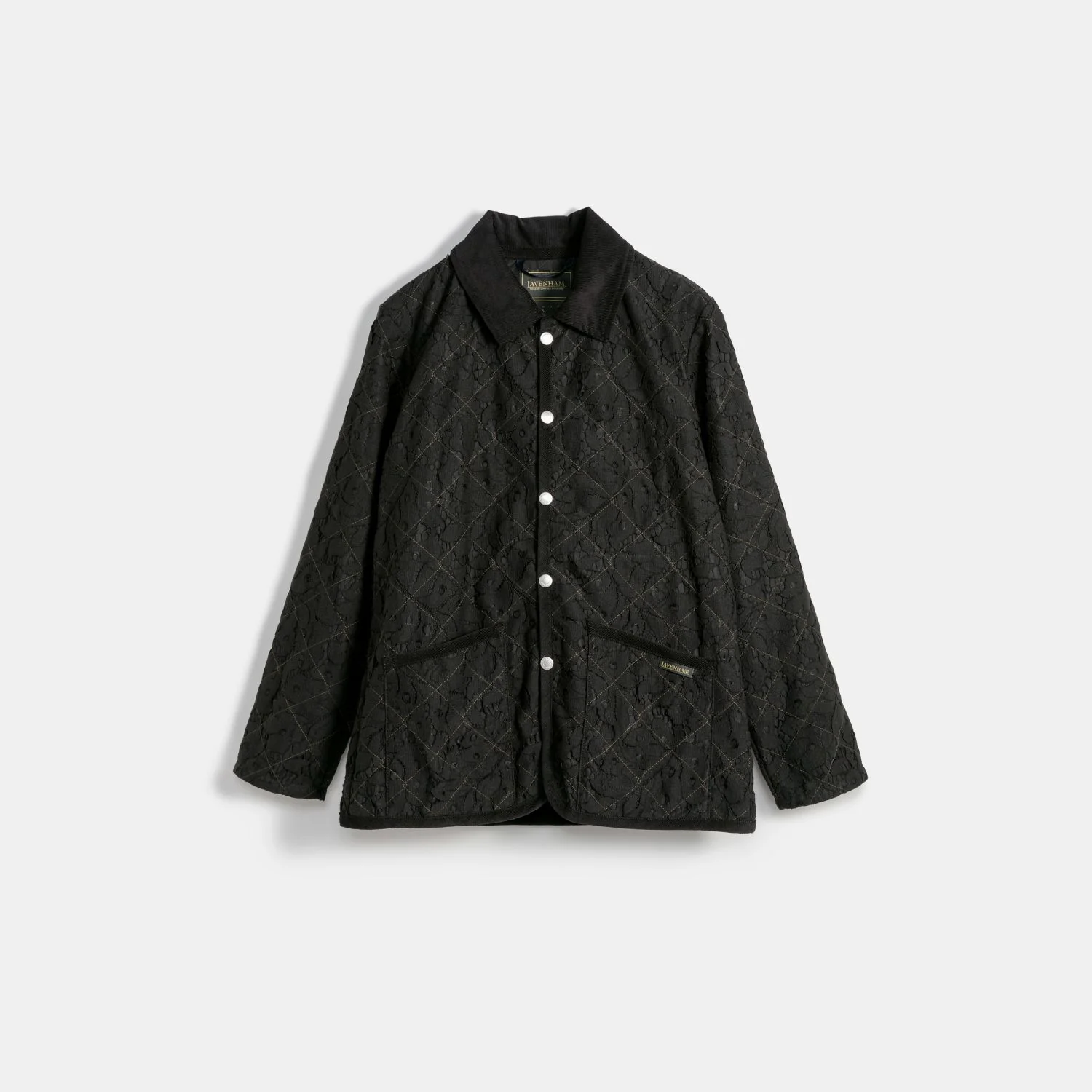 The iconic "LAVENHAM" jacket "Raydon" has been reconstructed in a cotton mix lace fabric and "UNWADDED" (without padding). This jacket is ideal for the spring and summer season.