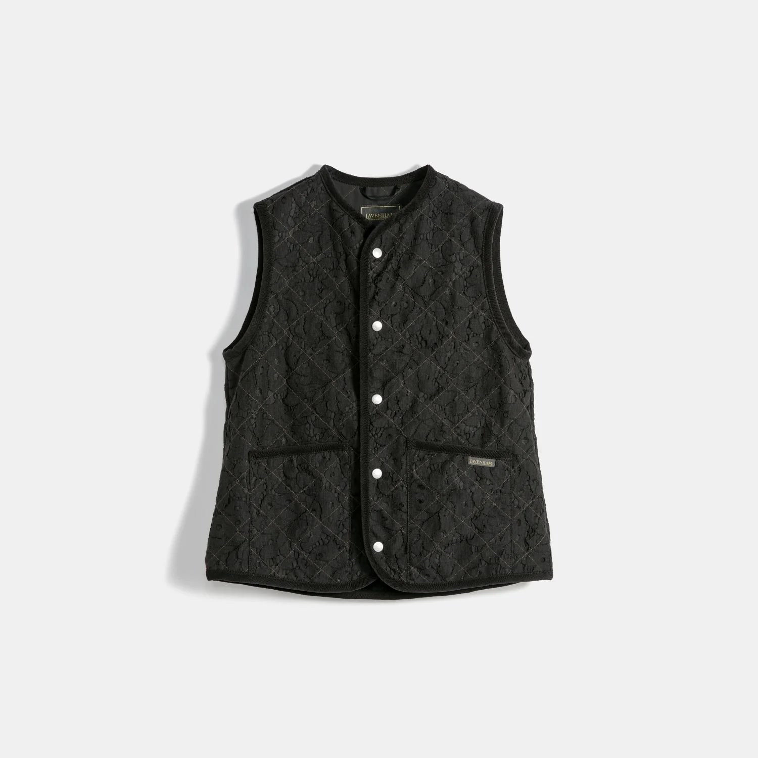 ● Classics' popular no-collar layering gilet (vest) "Cocoon Thornham" is re-imagined in cotton mix lace fabric and "UNWADDED" (without padding), while maintaining the same size and feel. This gilet is ideal for layering during the spring and summer seasons.