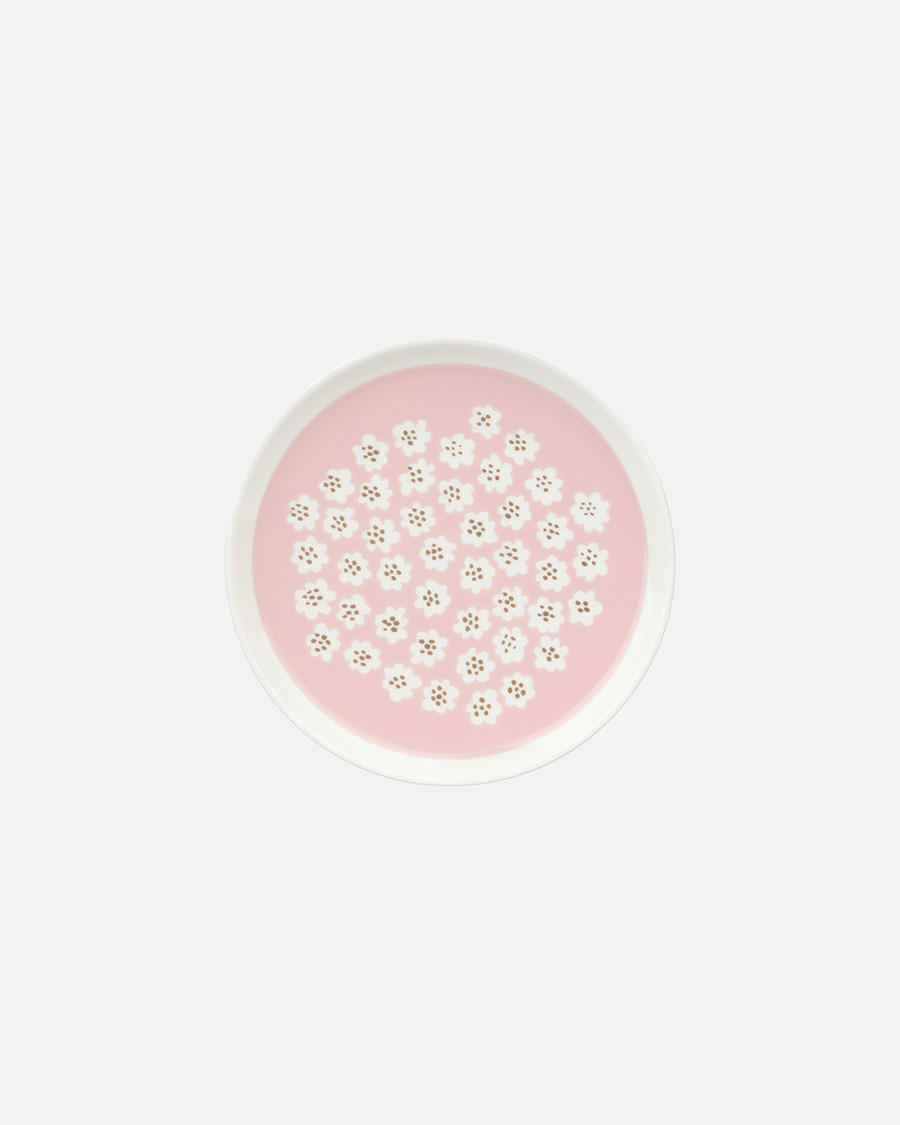 The sphere and the flower, two of Marimekko's most iconic elements, are combined to compose a lively and rhythmic design.