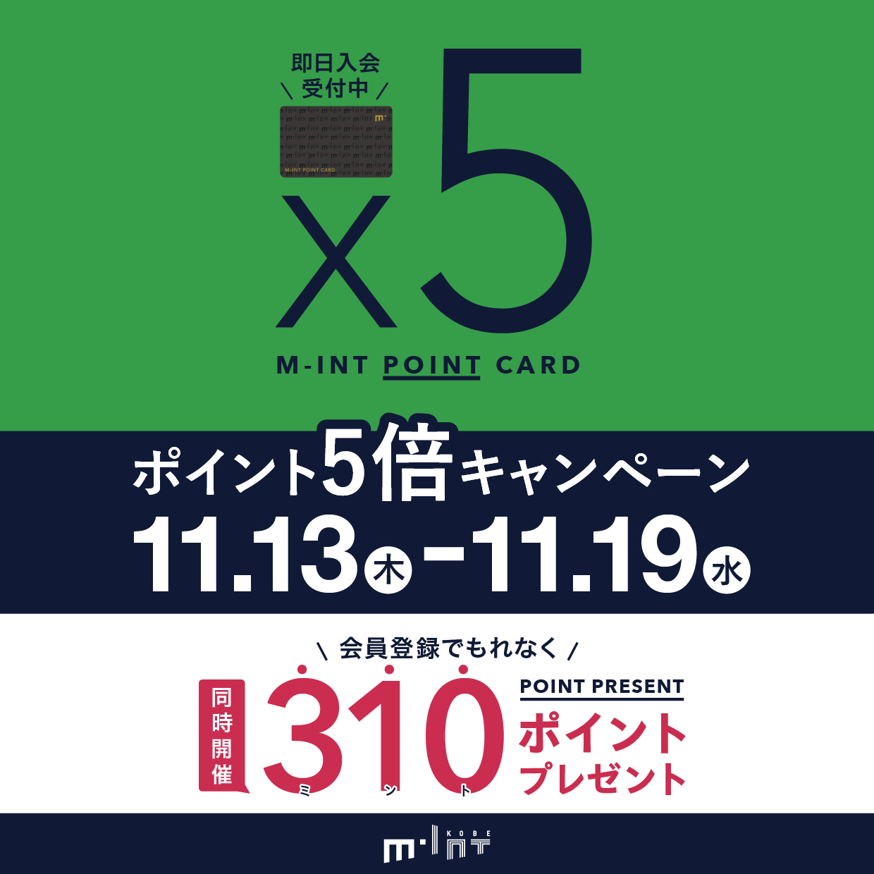 11/13(목)~19(수) 개최] 민트포인트카드 회원 한정! "포인트 5배」「회원 가입 310포인트 증정」캠페인