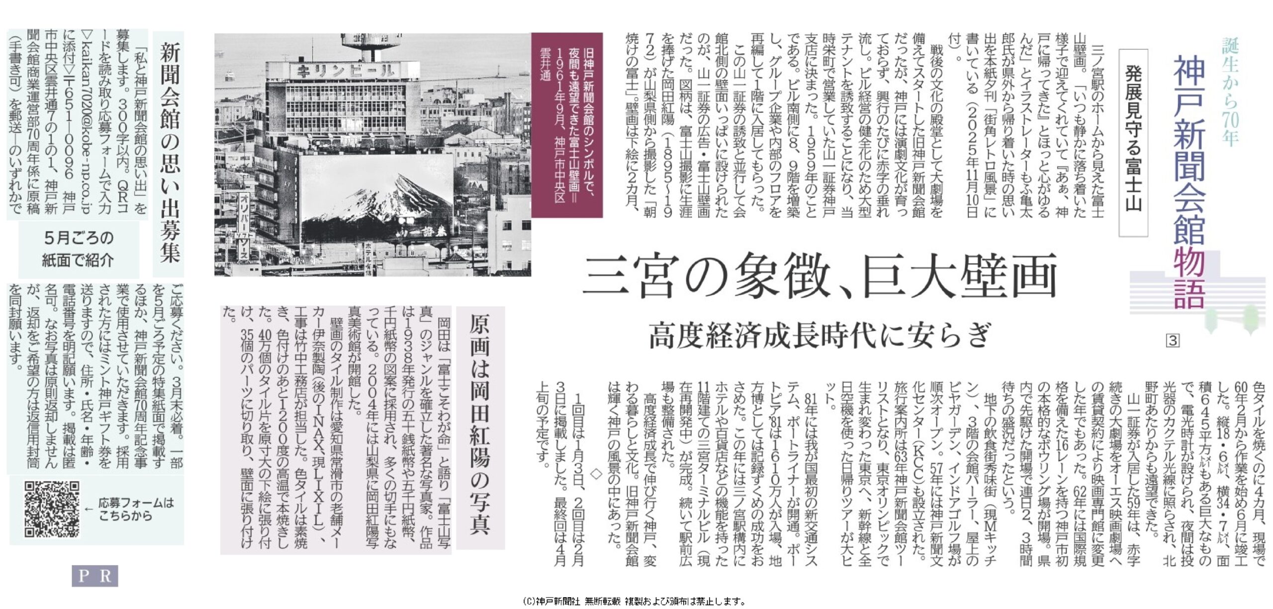 "나와 고베신문회관의 추억」모집에 관하여(자세한 내용은 여기))2026년 3월말 마감