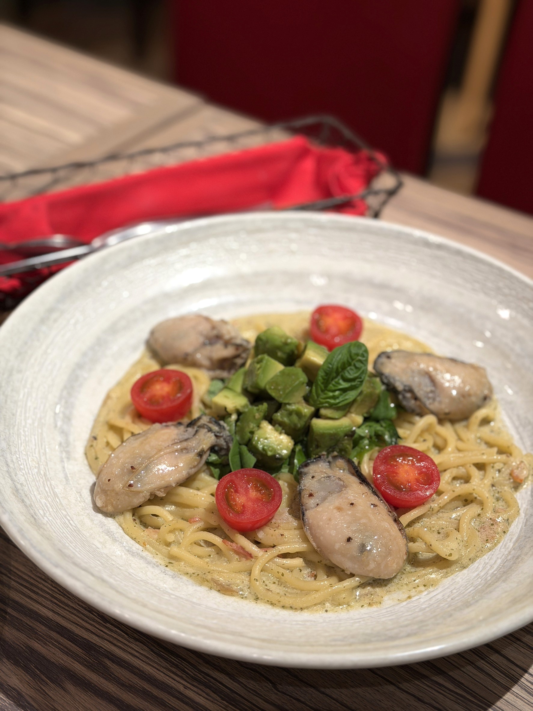 기간한정】대왕굴과 아보카도의 바질 크림 스파게티