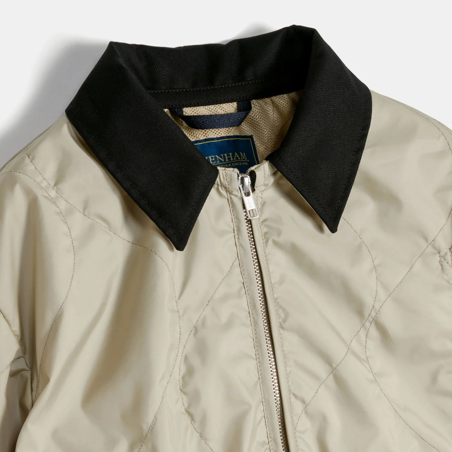 크롭트 기장의 박시한 실루엣의 퀼팅 재킷 'Teynham'을 'UNWADDED(솜이 들어가지 않은)'로 완성한 재킷. 겨드랑이 밑단에 아일렛이 있어 통기성이 뛰어나다. 앞으로의 따뜻한 계절, 봄과 가을에 착용하기에 적합하다.