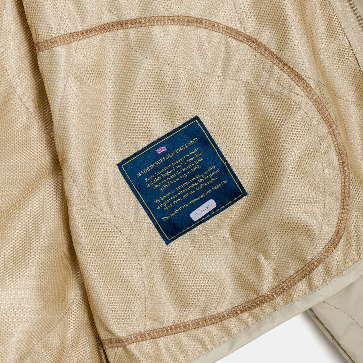 영국 전통의 '브리즈번 모스'사의 견고한 코튼 소재의 칼라와 러브스터 바인딩, 솔기 포켓 2개, 가슴 안쪽 포켓 1개, 더블 지퍼 잠금장치로 마감되었습니다.