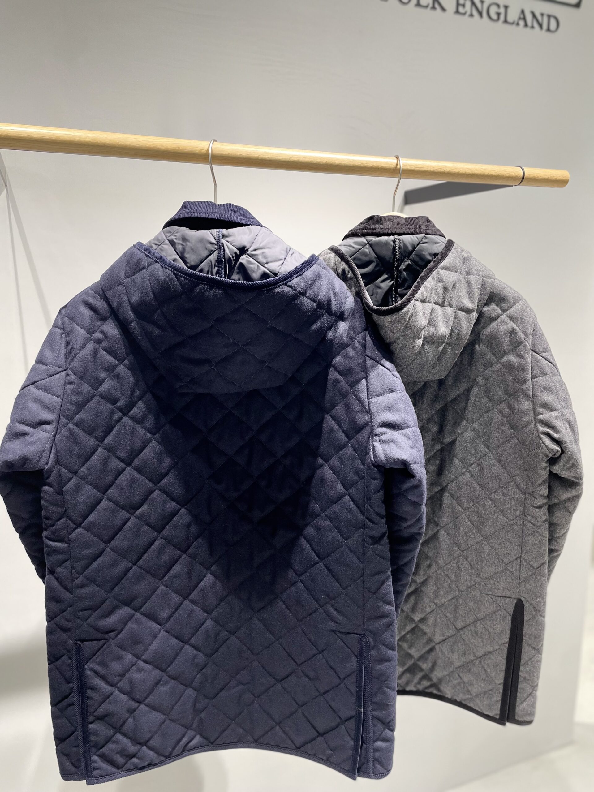 寒い季節向けに、ウールを使用し新たにデザインしました。ウールをミックスした素材を、代名詞である2インチダイヤモンドパターンでキルティング。