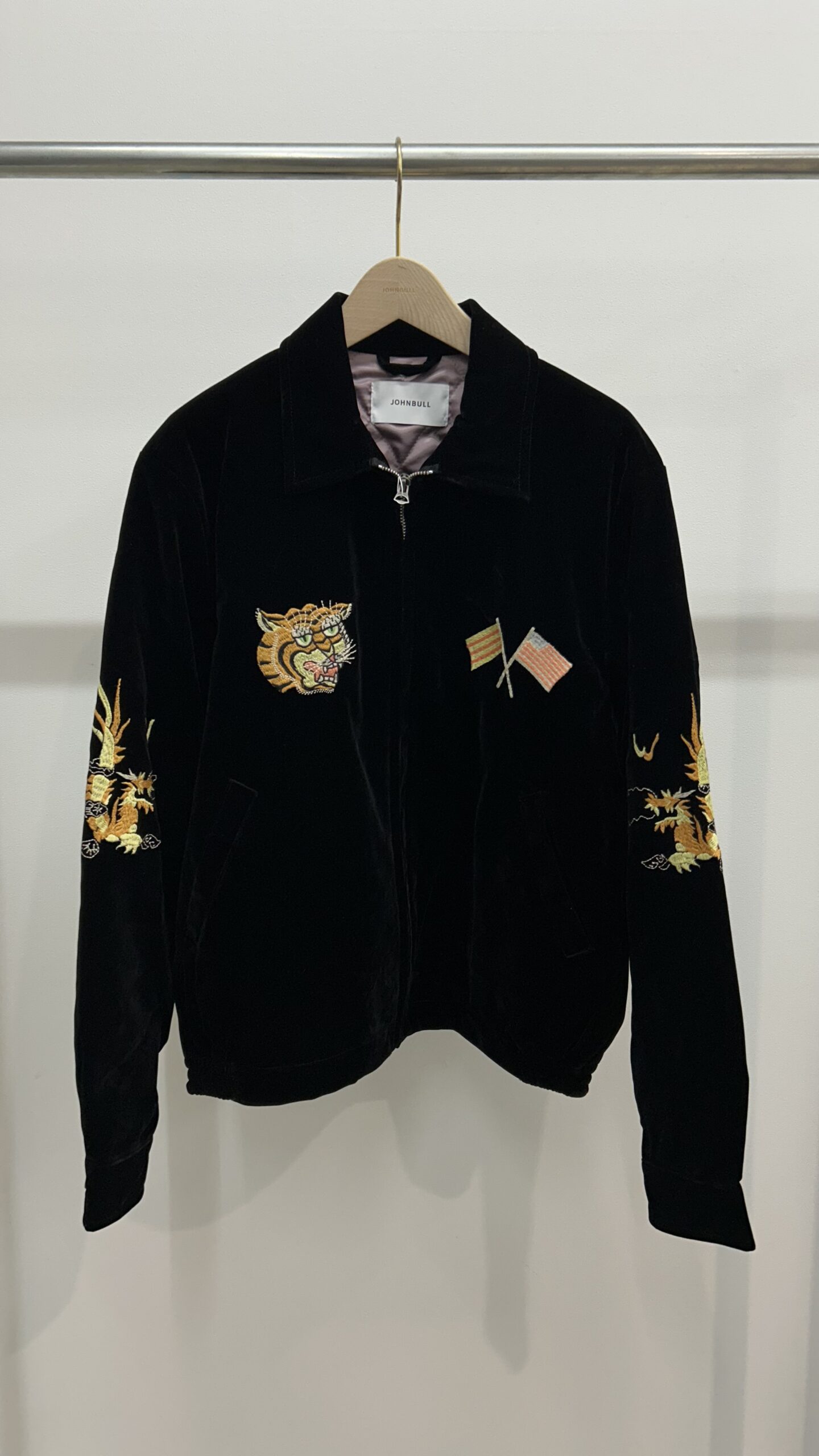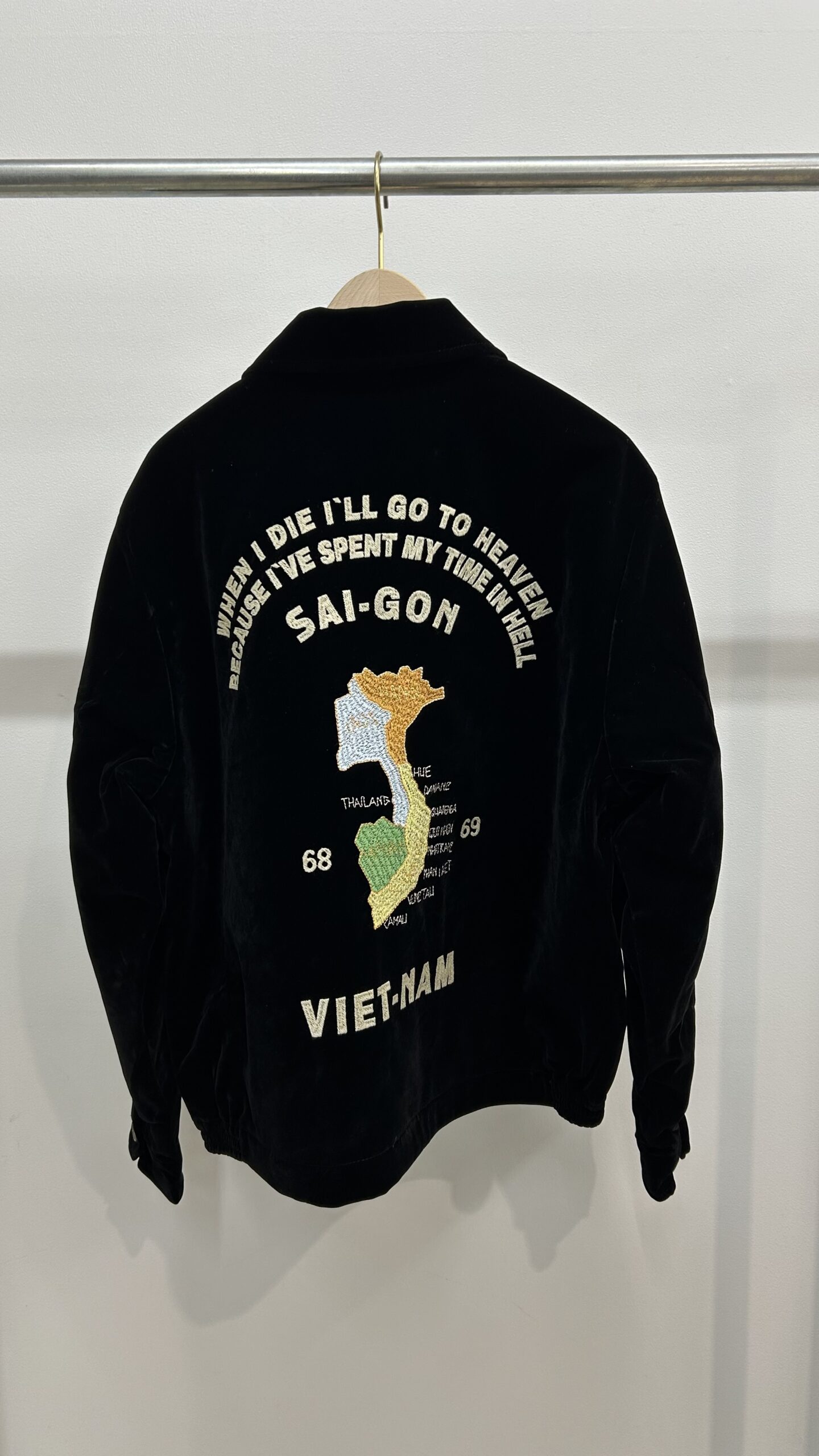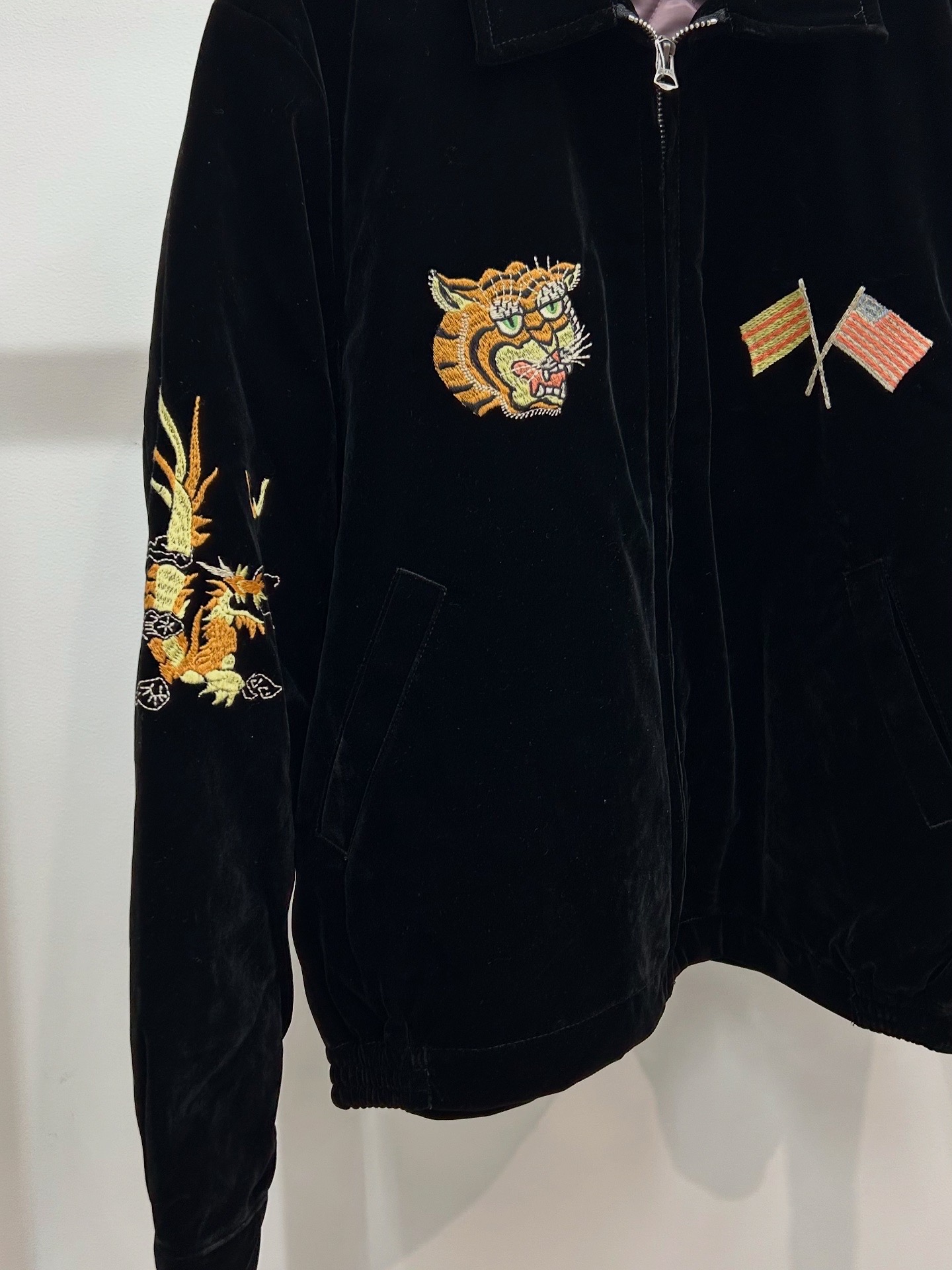 別珍素材を使用したスーベニアジャケット。ベトナム戦争当時のものをベースにしたデザインで、虎や竜などの刺繍モチーフが当時の空気感を思わせるオリエンタルな雰囲気の一枚。