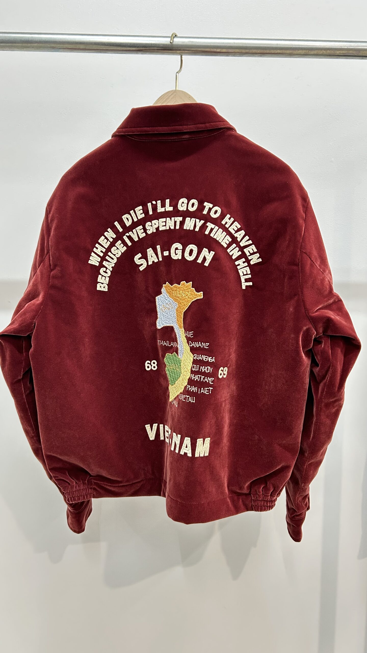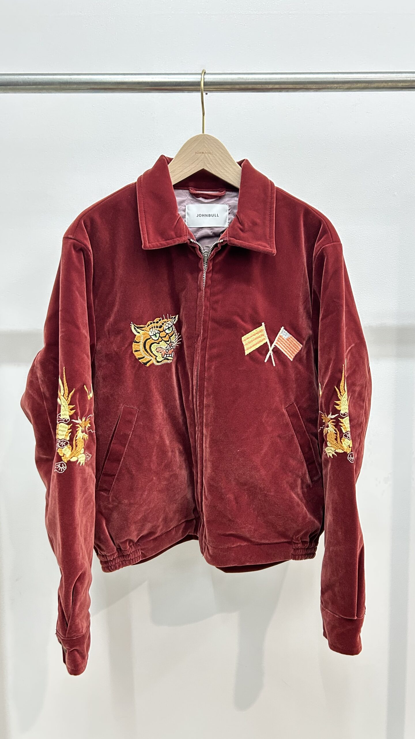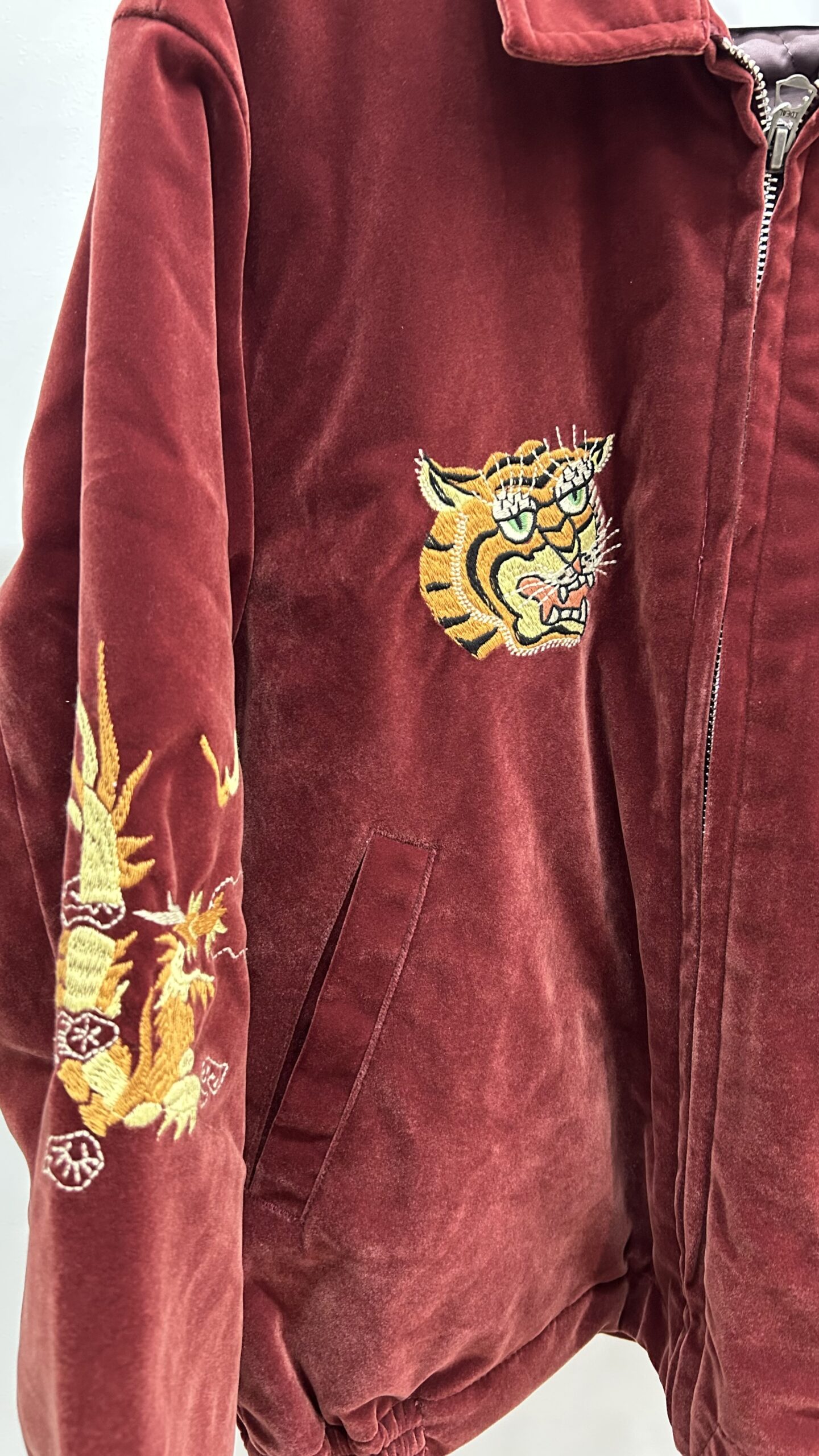 別珍素材を使用したスーベニアジャケット。ベトナム戦争当時のものをベースにしたデザインで、虎や竜などの刺繍モチーフが当時の空気感を思わせるオリエンタルな雰囲気の一枚。