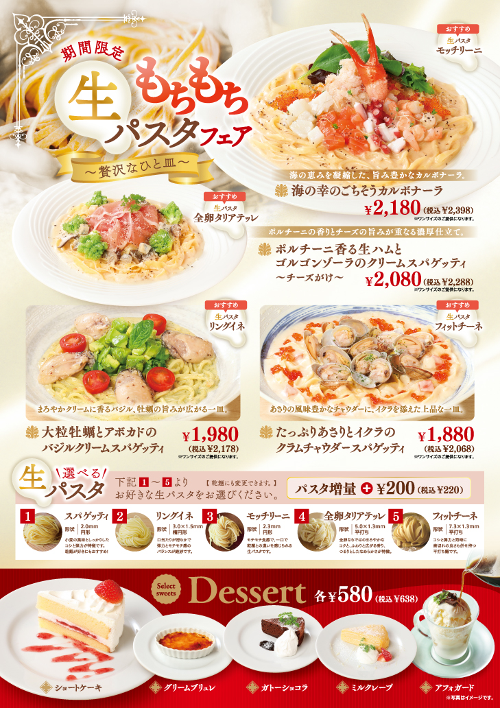 “生パスタならでは” の美味しさを存分にお楽しみください。