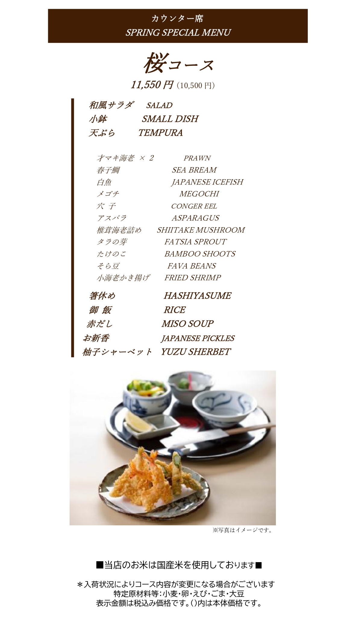 カウンター席・季節限定メニュー