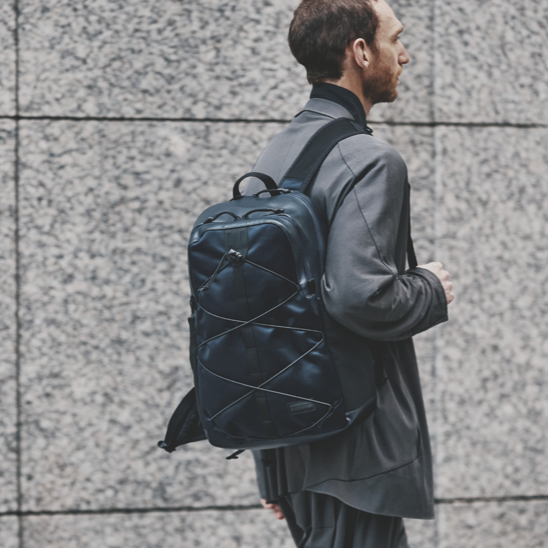 エコレザーとナイロンを組み合わせ、アウトドアフィールドに対応するタフさと都市生活に馴染む洗練された表情を兼ね備えたプロダクトに仕上げています。