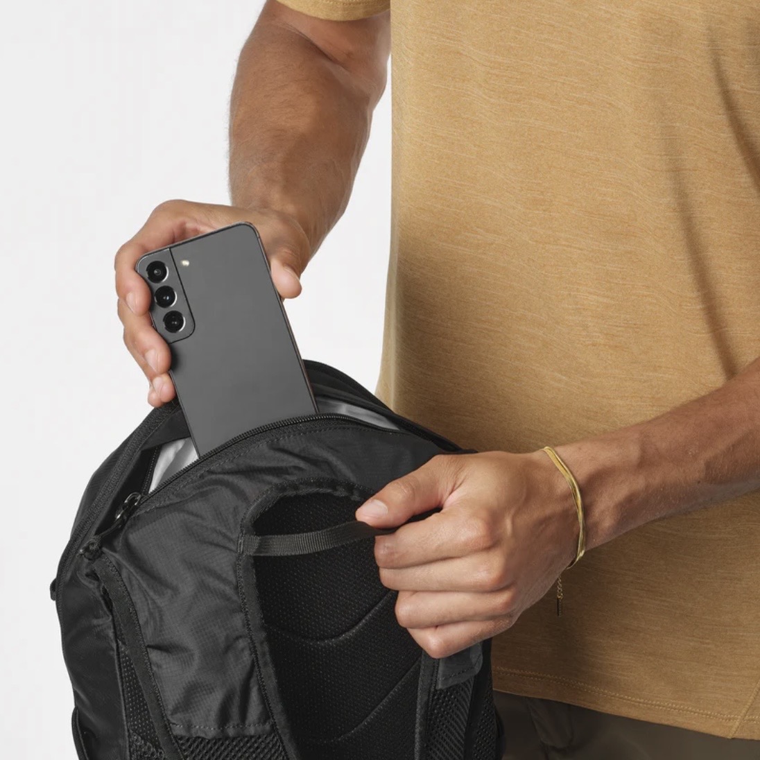 また、サイドのストレッチポケットや背面ポケットなど、