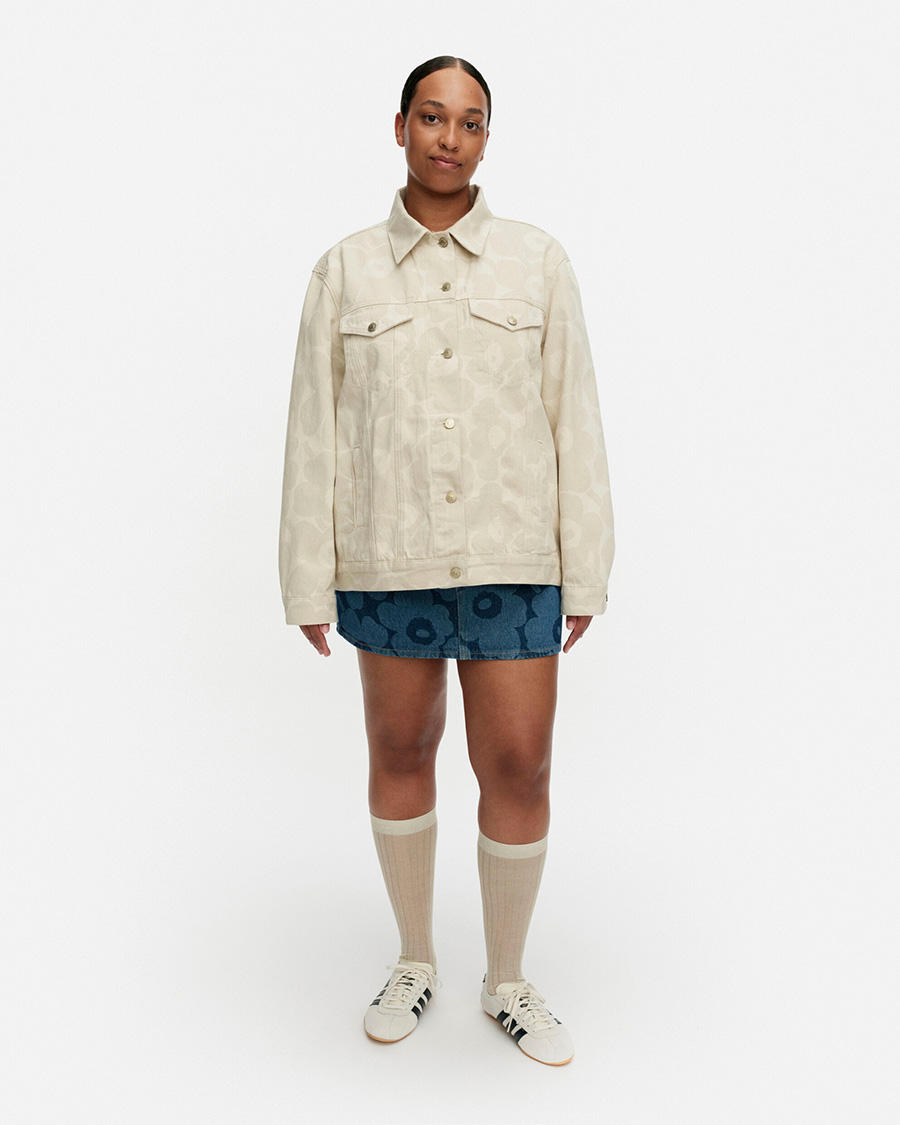 Maija Isola(マイヤ・イソラ)によるブランドを象徴するプリントであるUnikkoをあしらったエクリュのジャケットやパンツが登場します。
