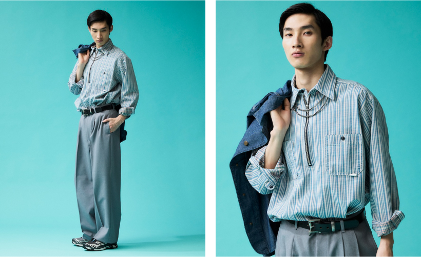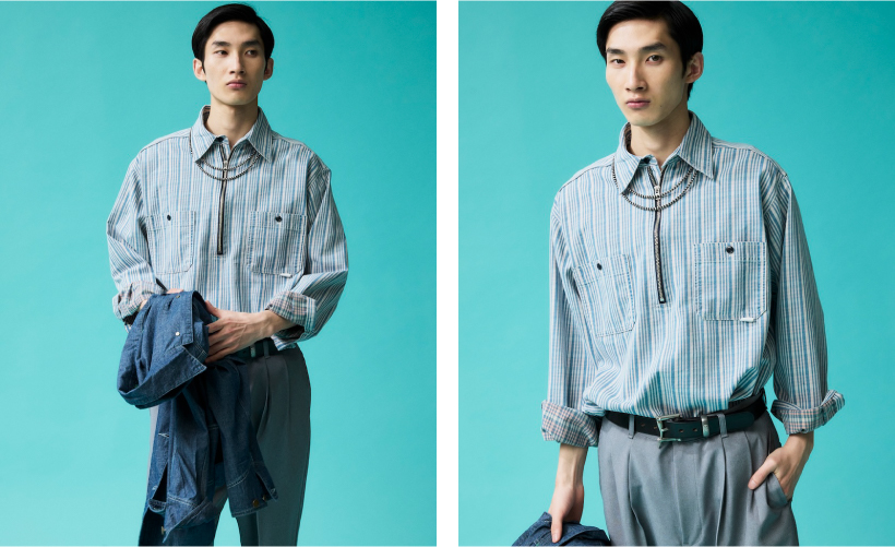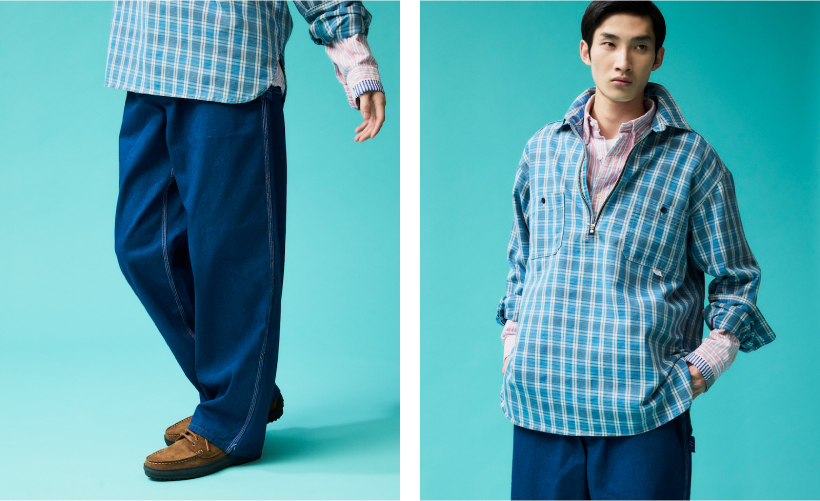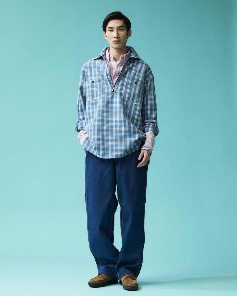 UNION HERCULES MADEより新たなラインナップとして大変ご好評いただいているハーフジップシャツに、新しいカラーとしてインディゴ糸を使用したチェック、ストライプ柄が発売。デニムとのスタイリングの相性はもちろん抜群で、着こなしの幅がグッと広がる見逃せないアイテムです。それぞれの柄を取り入れたおすすめのスタイリングをご紹介しますので、ぜひお買い物の参考にご覧ください。