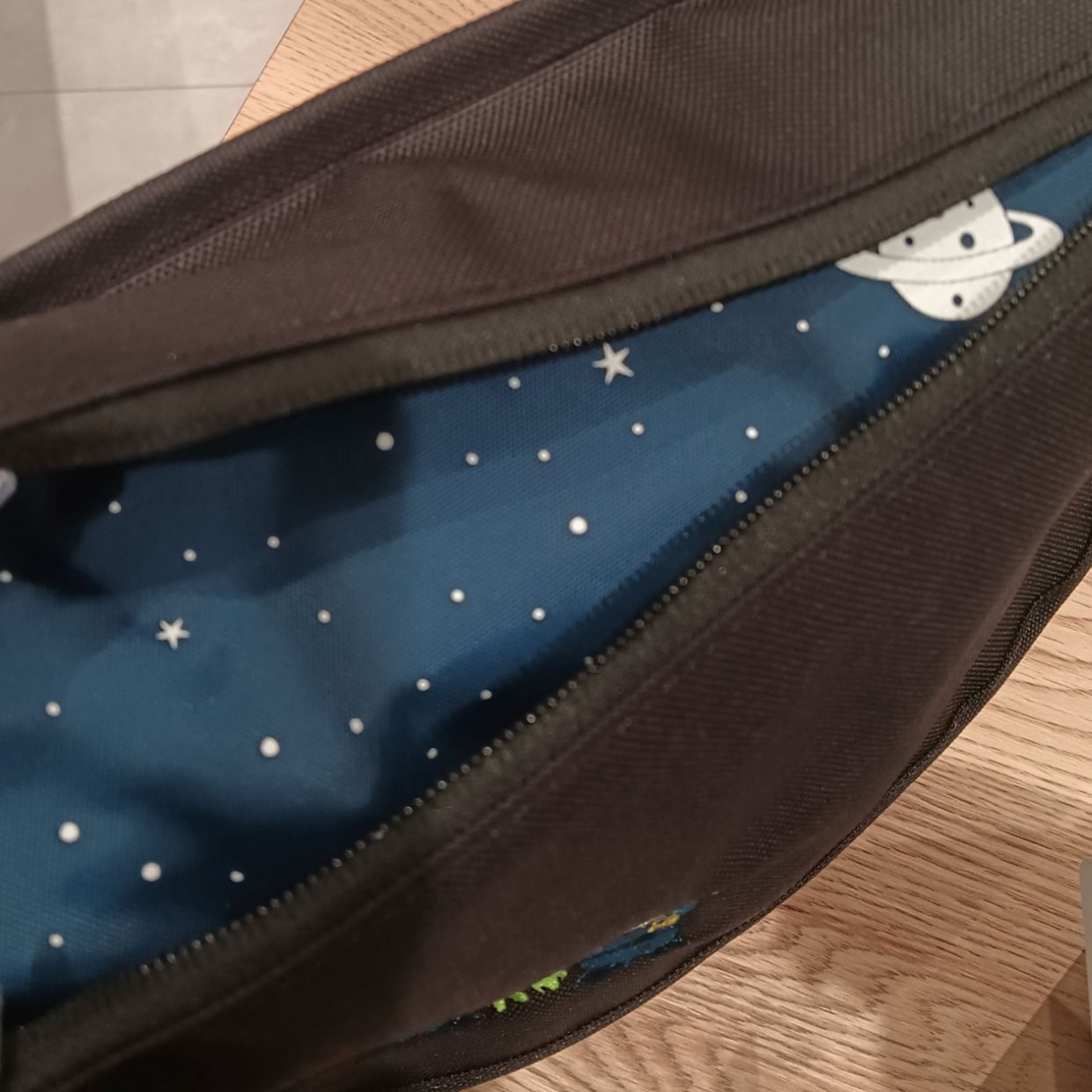・フラップジッパーポケットの裏地には宇宙柄をあしらい、開けるたびに映画の世界観を楽しめる
