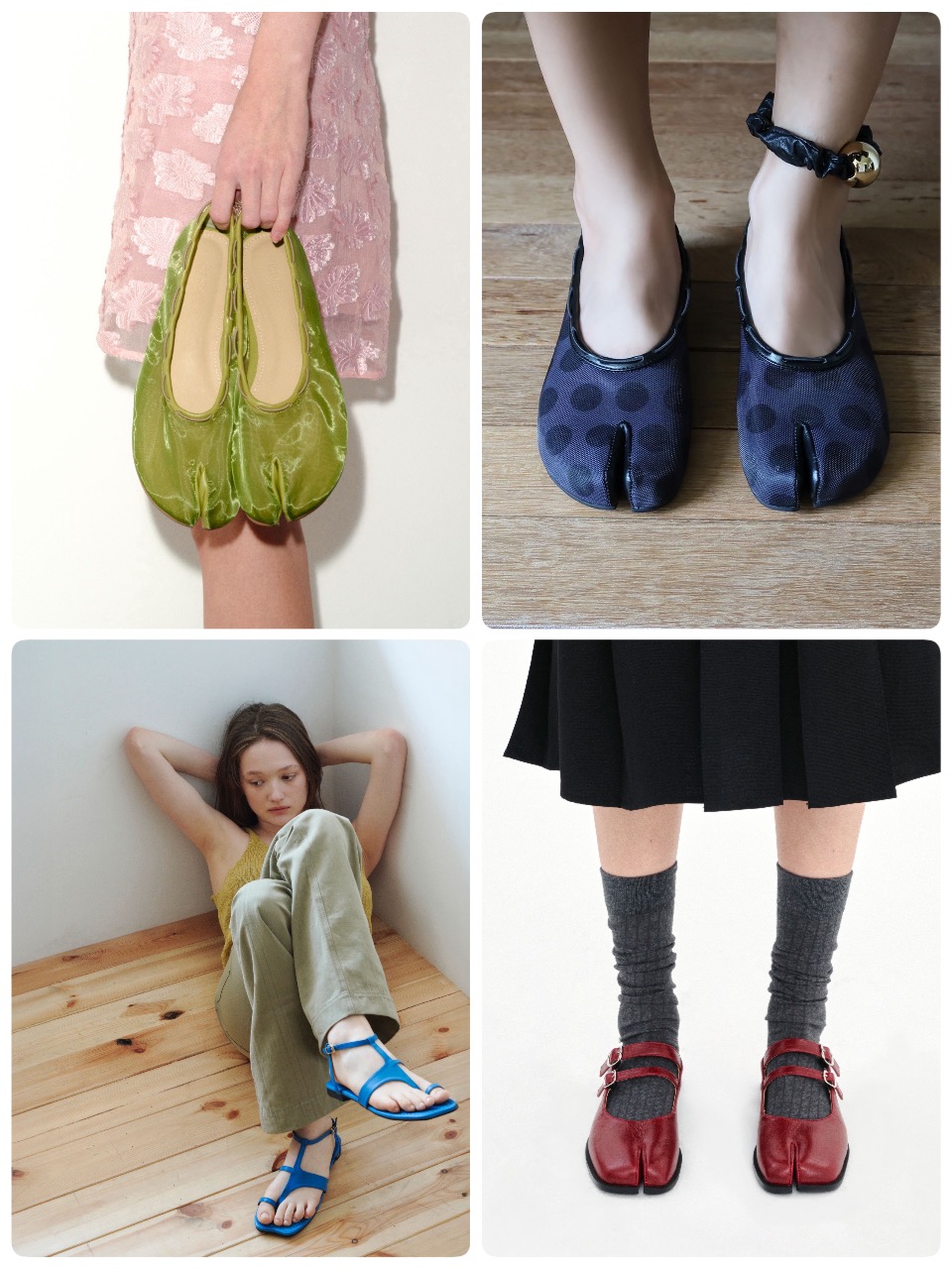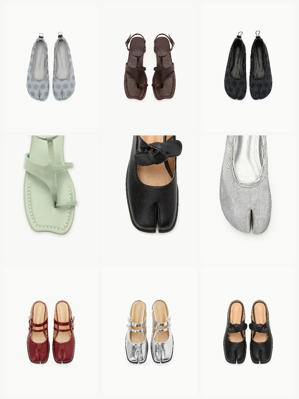 限定カラー以外にもインラインの商品からタビ型のトゥが目を引くミュールや、