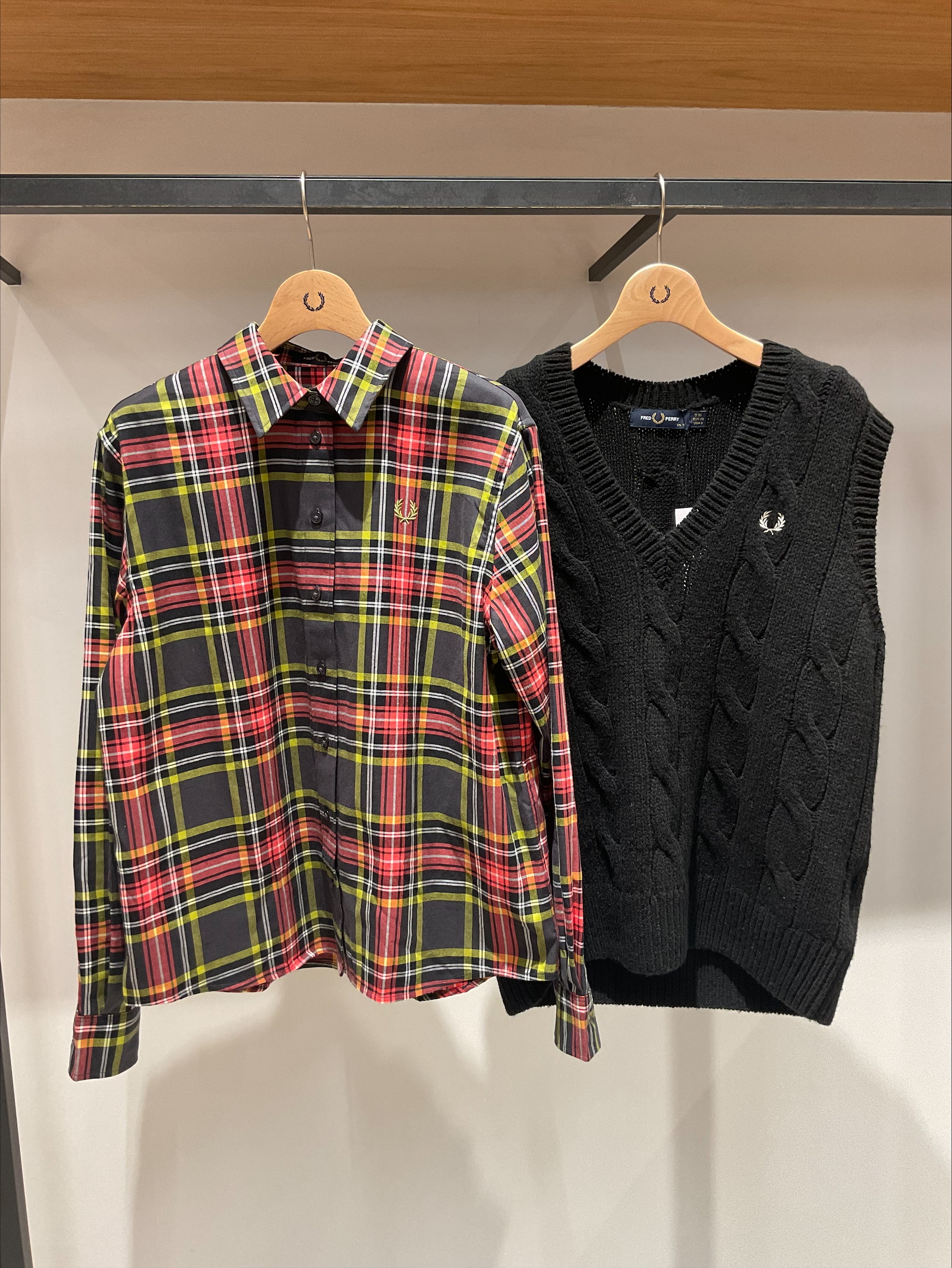 それぞれ商品に個性はあるのですが、重ねて着るとよりオシャレにフレッドペリーらしい素敵なスタイリングに仕上がりました。