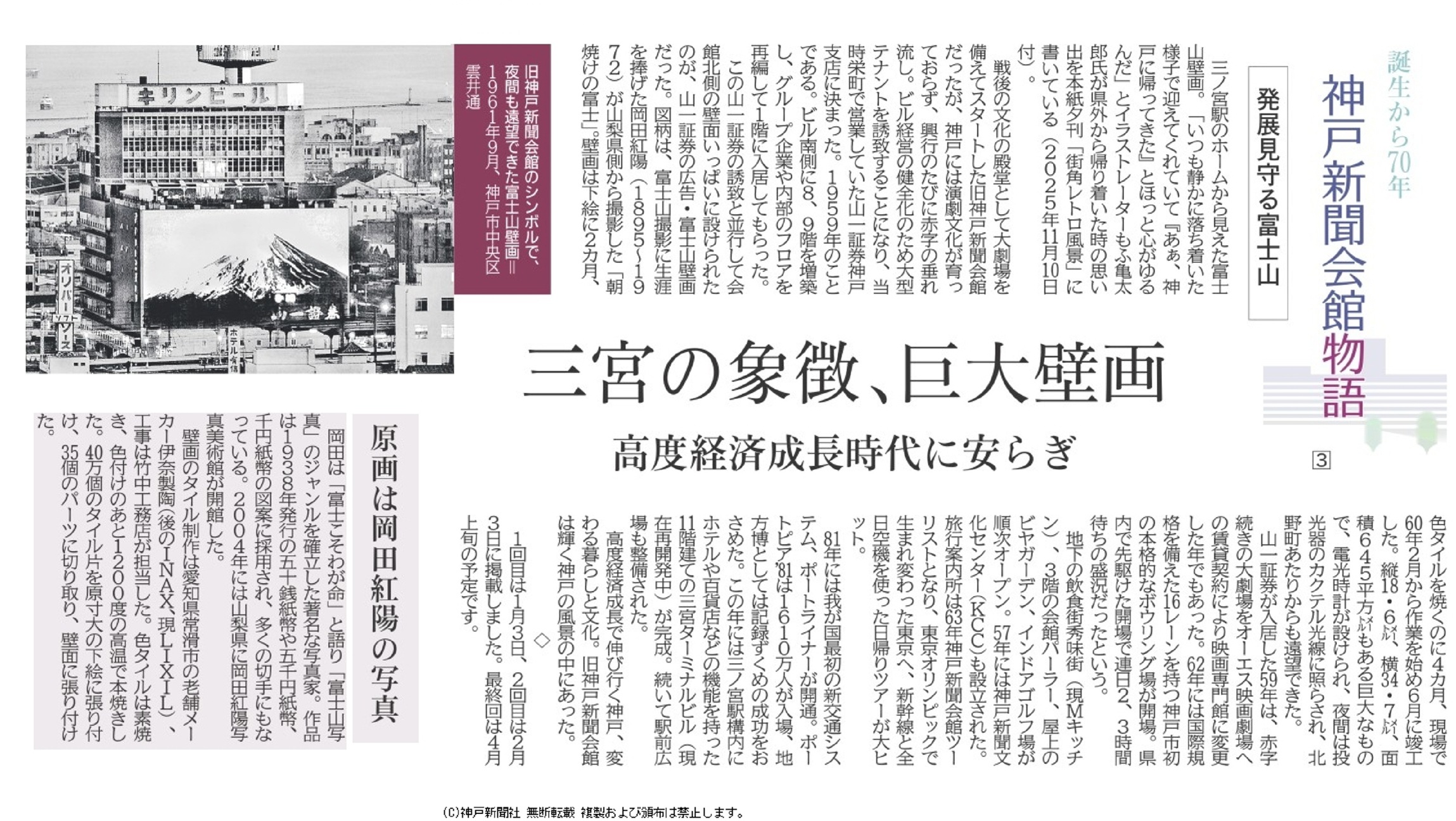 2026 年 5 月 3 日,神戶造幣廠的前身神戶報館成立 70 周年、 2026年1~4月にわたり神戸新聞で記念コラムを掲載致しました。